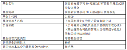 - 2025-05-24国泰君安君享利30天滚动持有债券发起增聘杨勇